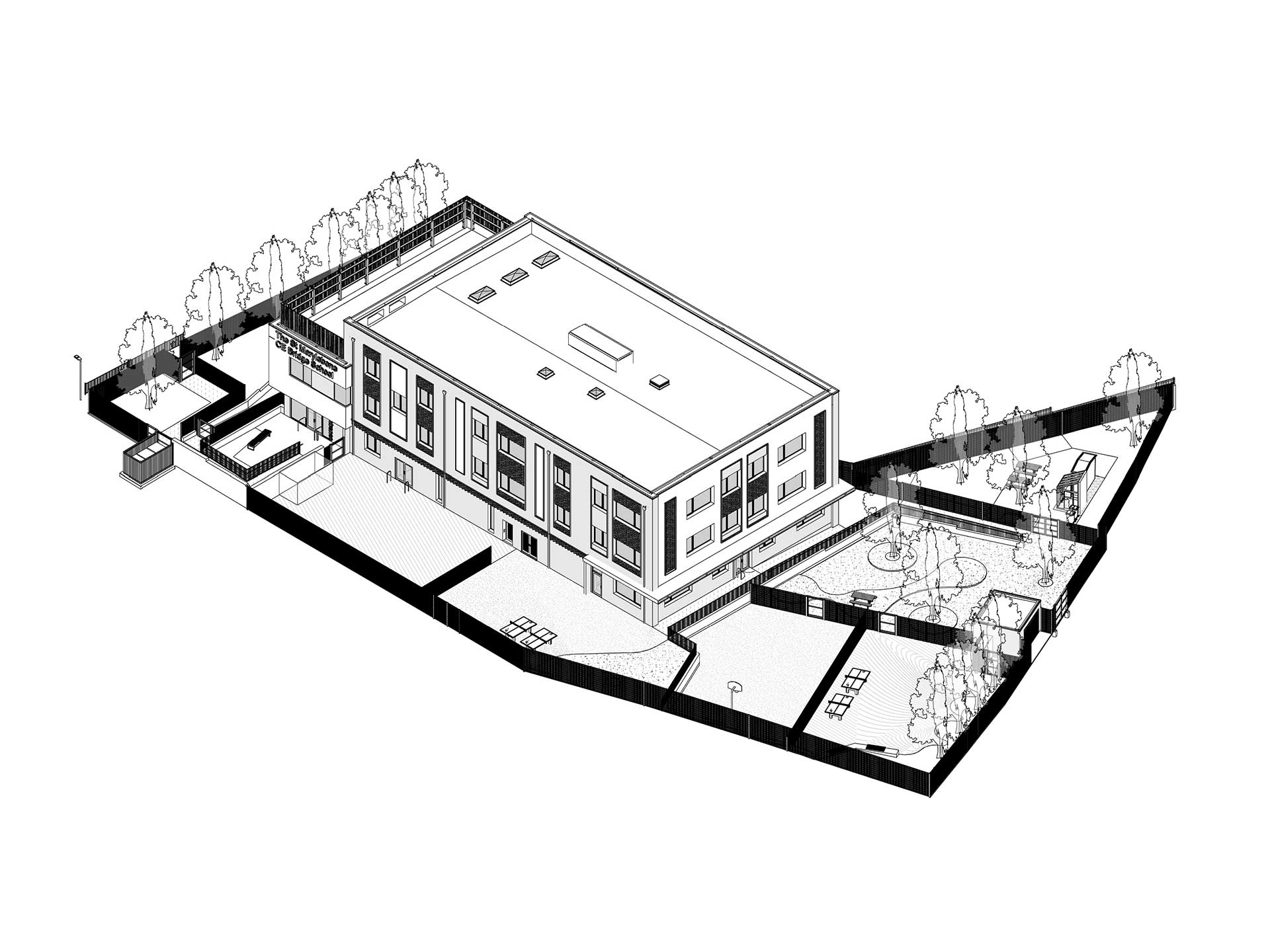 Mae ysgol St Marylebone yn darparu cyfleusterau addysgu arbenigol ar gyfer 70 o ddisgyblion rhwng 11 ac 16 oed ag anghenion lleferydd, iaith a chyfathrebu. Wedi'i ddylunio'n gwbl unol â gofynion allbwn y DFE, roedd y cynllun tirwedd yn cynnwys amrywiaeth o gyfleusterau allanol ac addysgol gan gynnwys arwyneb chwarae meddal, ardal chwaraeon, cynefinoedd a mannau tyfu ynghyd â'r fynedfa gysylltiedig a thriniaethau ffiniau.